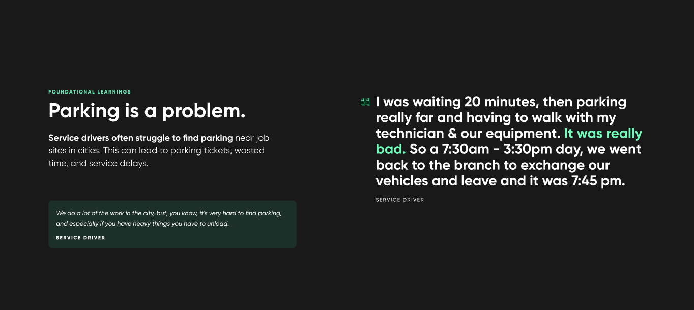 Parking at job sites in cities is a real problem to solve, but drivers are the decision-makers for real time parking, not fleet managers or dispatchers.